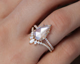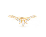 - Delicate Curved Band of Brilliant Cut Marquise and Round Diamonds