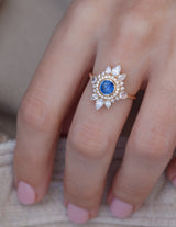 - Outer Halo of Brilliant and Rose Cut Pear and Round Diamonds