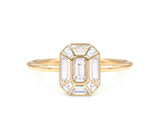 - Meticulously Set Diamond Inlay Creates an Emerald Shape Mosaic