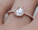 1-Carat White Rose Cut Teardrop Diamond Ring