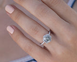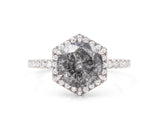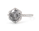 - 14-Karat White Gold Setting with Hexagon Shaped Halo