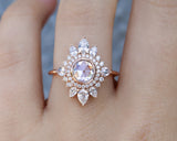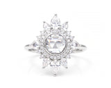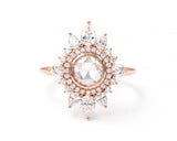 - Outer Halo of Brilliant and Rose Cut Pear and Round Diamonds