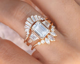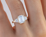 - 0.53-Carats Total Weight of E Color VS1 Clarity Step Cut Trapezoid Side Stones